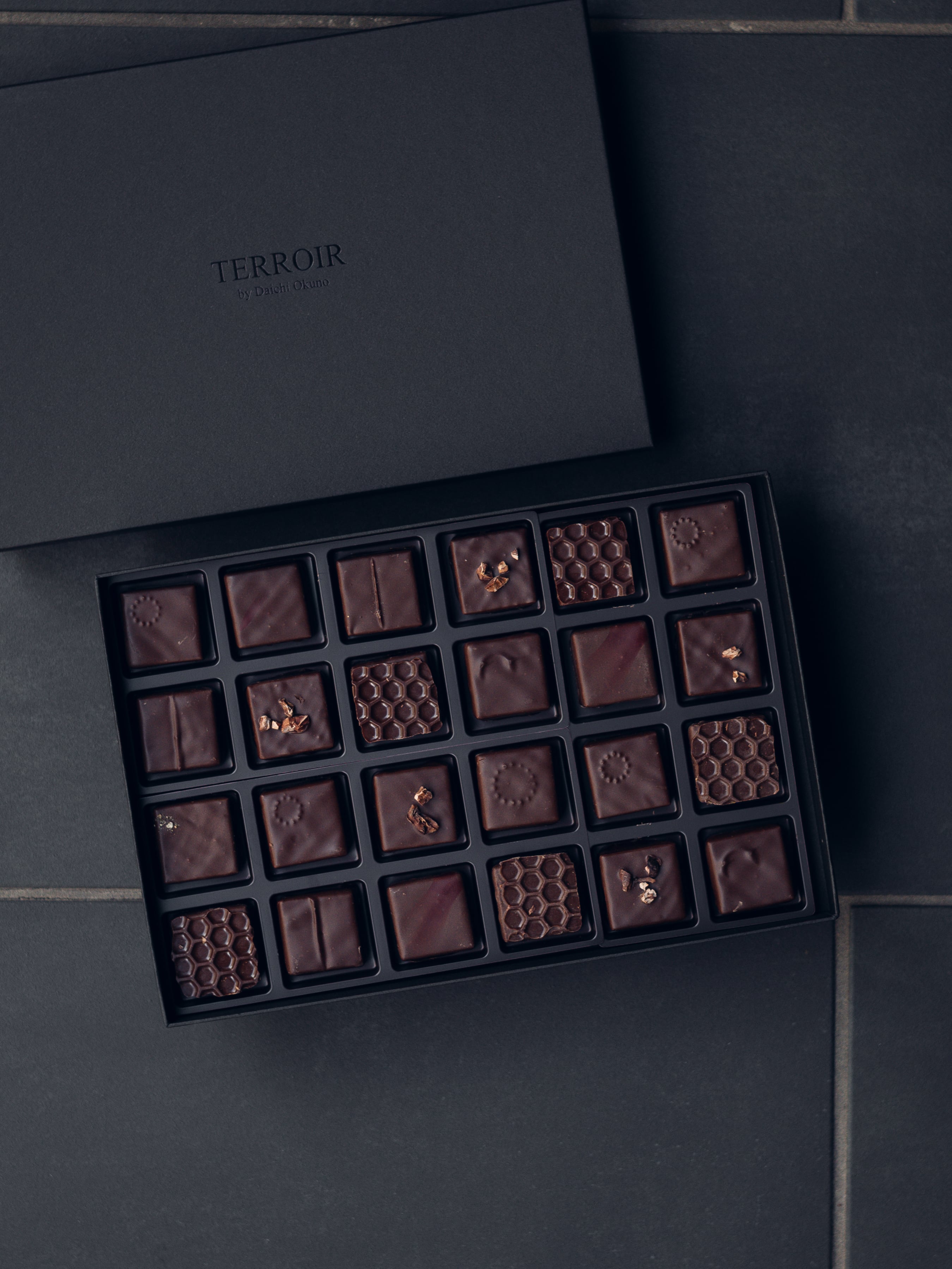 テロワールのスペシャリテのボンボンショコラ、バラエティに富んだ24個入のセレクションボックス。(内容はお選びいただけません。アレルギーをお持ちの方は店舗にお問合せいただくか、備考欄に詳しくご記載いただけますと幸いです。)