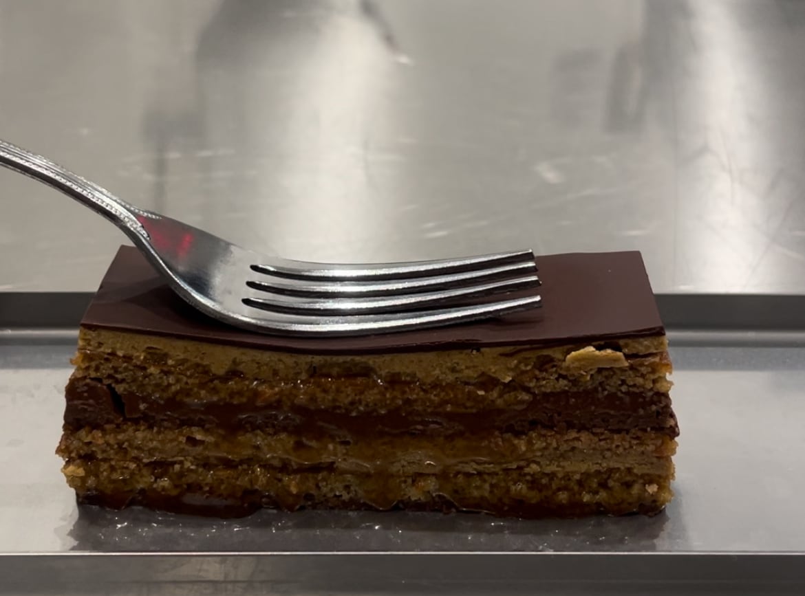 アーモンドたっぷりの生地とコーヒーのバタークリーム、スモーキーなガナッシュを